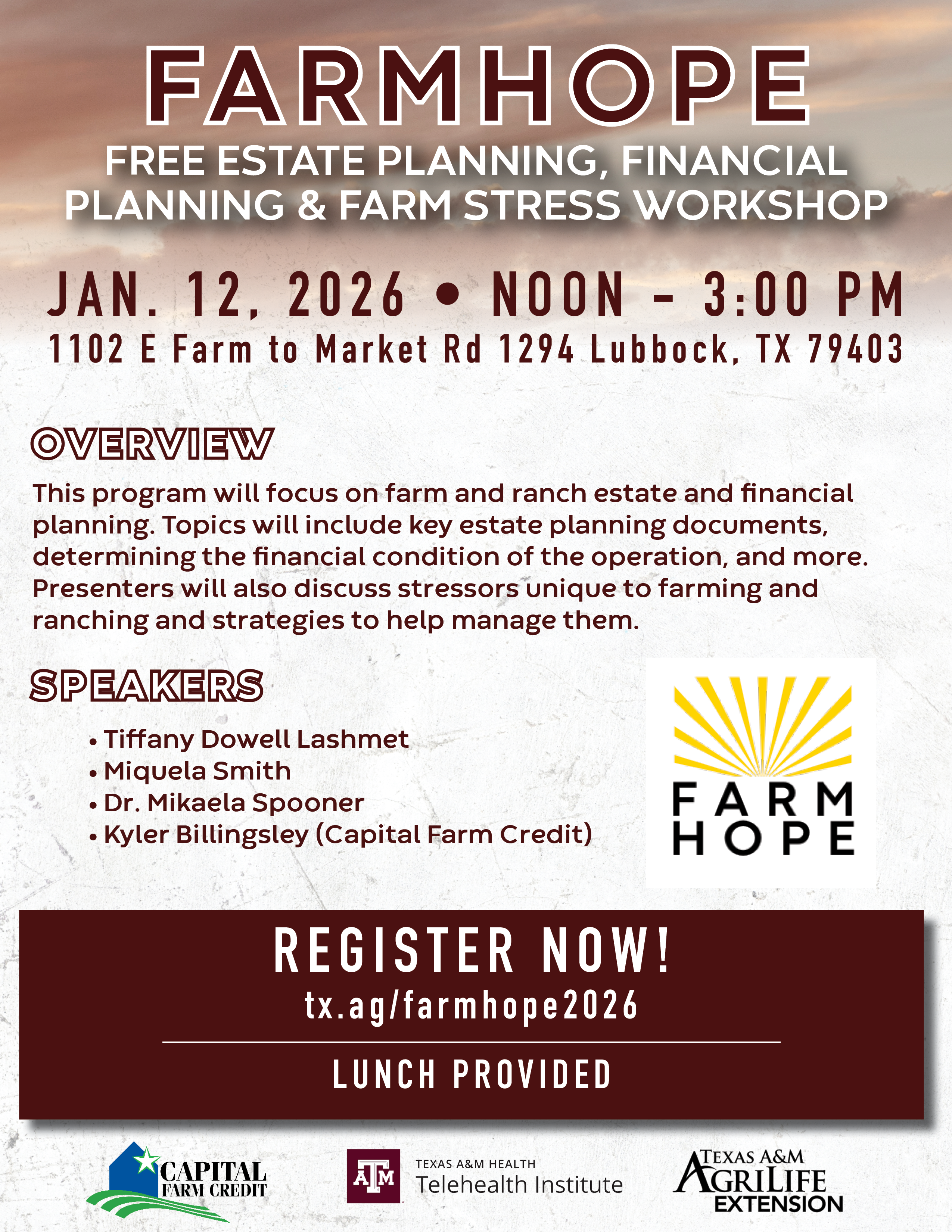 This event is in partnership between Texas A&M AgriLife Extension and Capital Farm Credit.